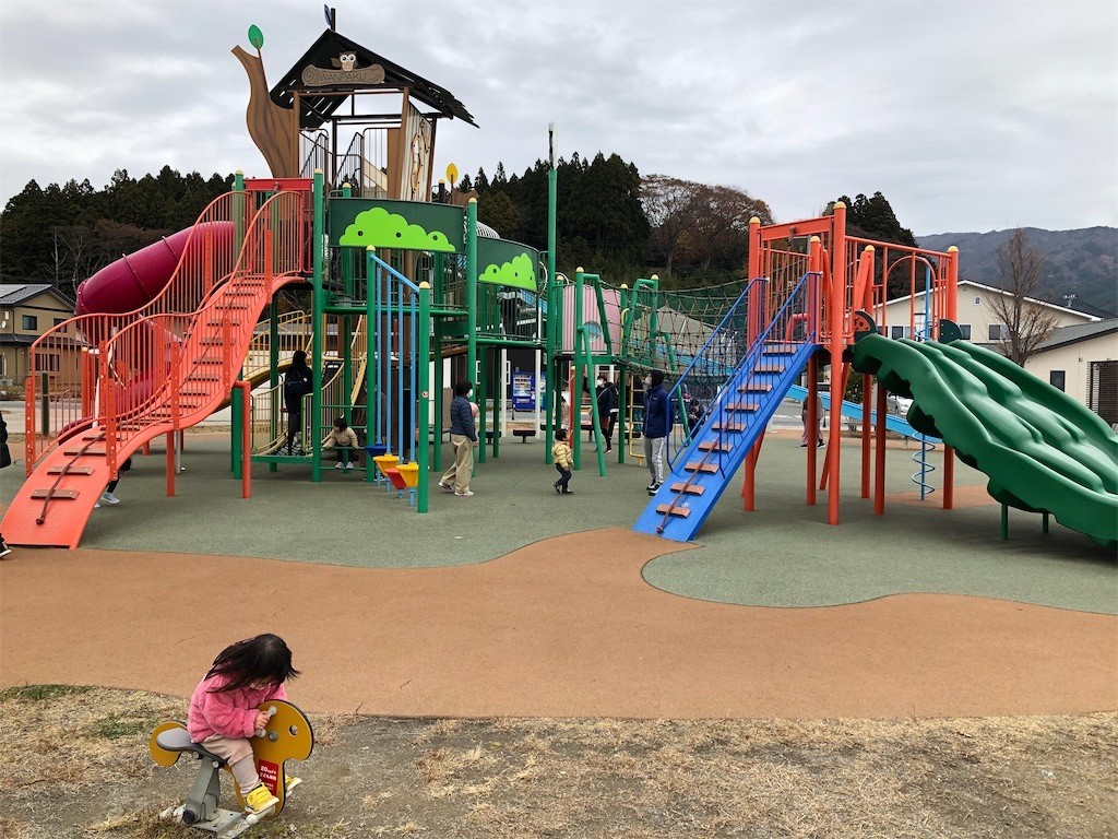 公園は地面がぐにっとなるゴムで整備されていて、子供が転んでも怪我をしにくくなっています。