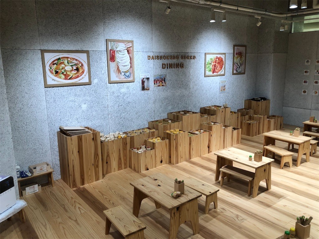 こちらは同ビルの「マルカン大食堂」を模したエリア。ハシで食べる10段ソフトも積み重ねて作るごっこ遊びをすることができます。