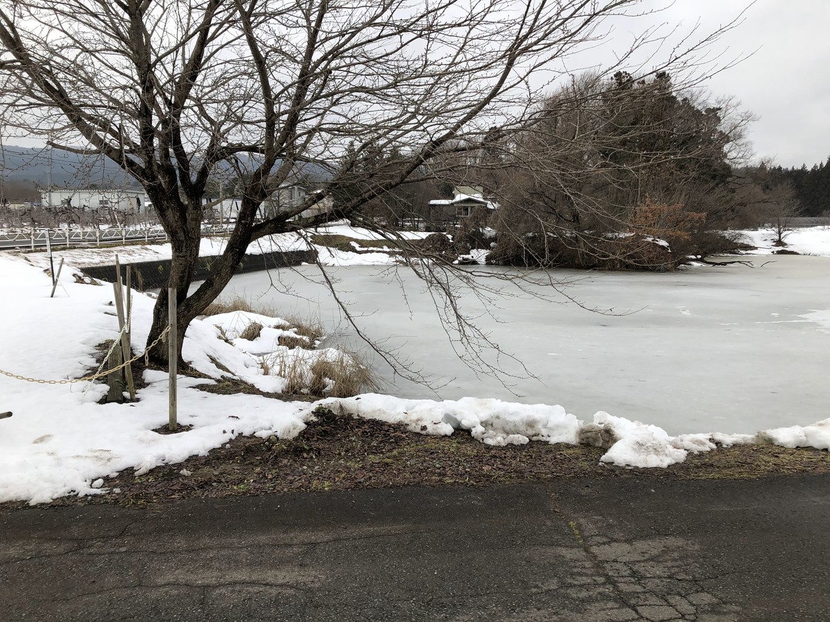 ちかくに池があり、氷が張ってました。今年は温かいので氷が薄そうで遠くからみてただけですが、池に氷が張るのをみたのがなにげに初めてな気がします。いつか盛岡の北の方にいってワカサギつりもしてみたいなぁ・・・とついでに思いました。